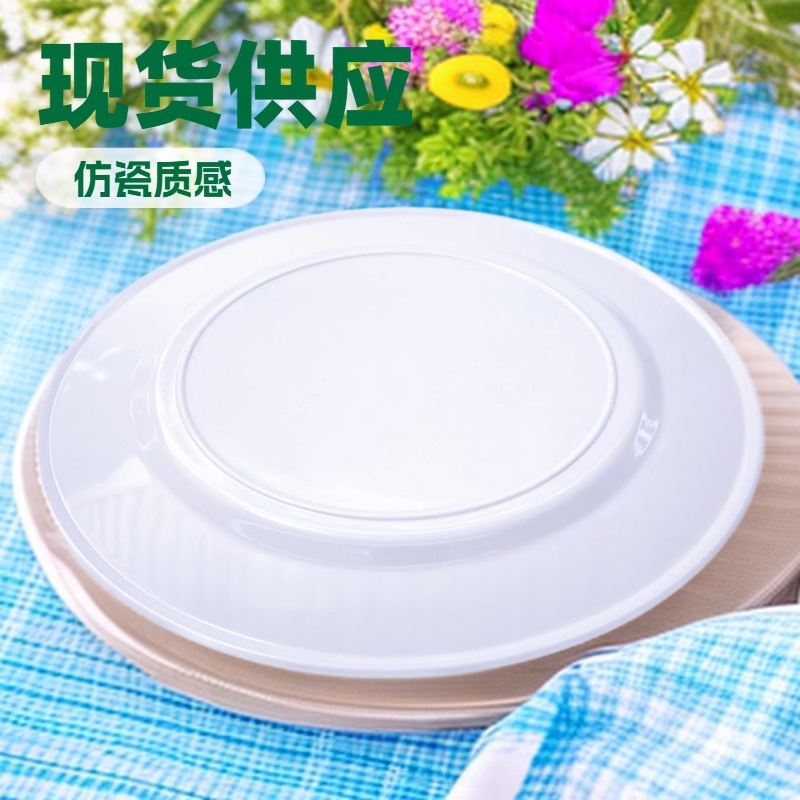 Cross-border supply of imitation porcelain tableware, dining hall household round plates, hotel and restaurant commercial plates, white round dining plates