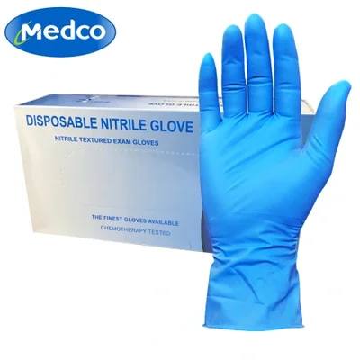 قفازات النتريل القابل للتصرف للتجارة الخارجية، خالية من المساحيق، عالية المرونة، قفازات طبية مطاطية جراحية متينة يمكن التخلص منها
