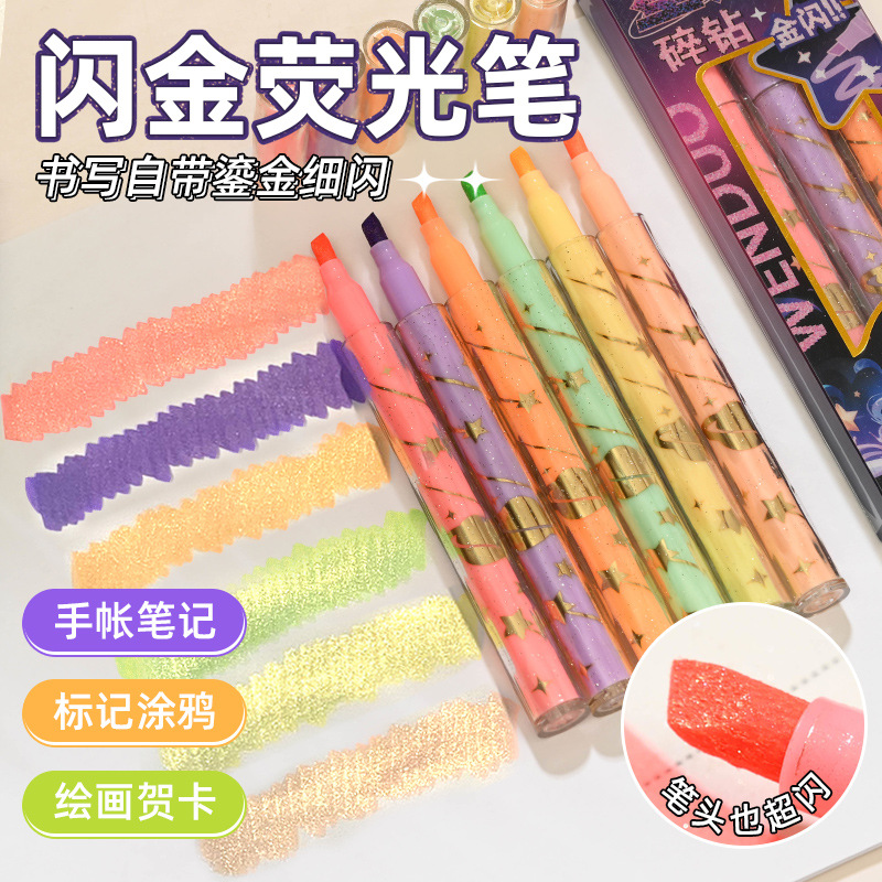 قلم تمييز Kiss Dot Glitter باللون الذهبي، مستوى مظهر عالٍ، لون يحمي العين، وضع علامات على دفاتر الطلاب، خربش، مجموعة أقلام لتدوين الملاحظات