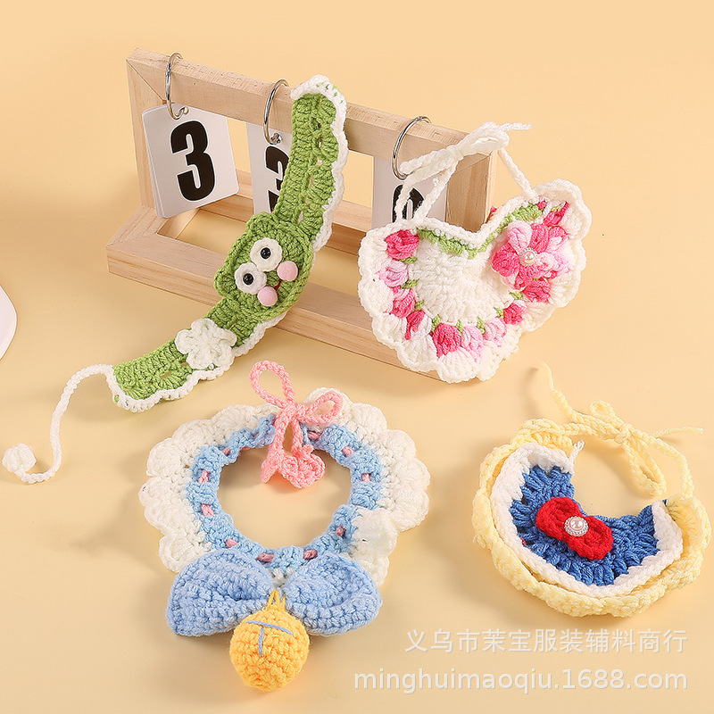 Pet hand-woven collars, cute cat knitted saliva wipes, kitten neck rings, small dog neck accessories