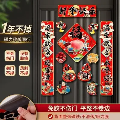 Glue-free magnetic magnetic Horse Year "Fu" character couplet pendant, new Chinese-style entrance door New Year decoration magnetic set