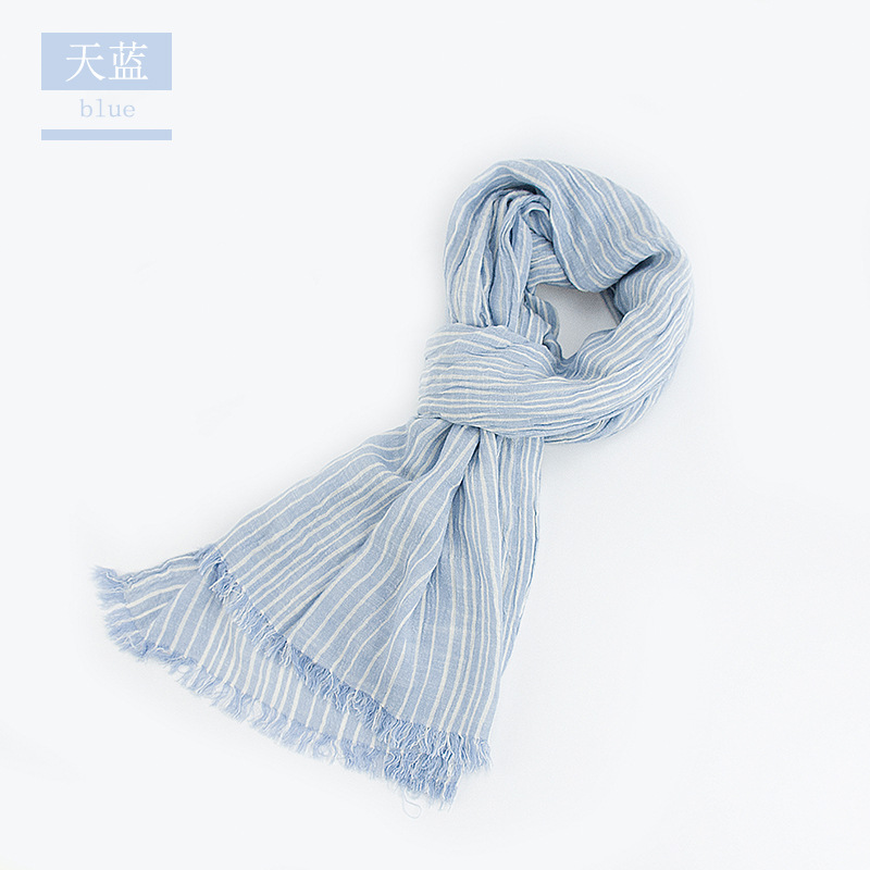 Cotton and linen scarf, Japanese artistic style striped tassel shawl, simple and easy-to-match decorative scarf for students in Spring and autumn 2021