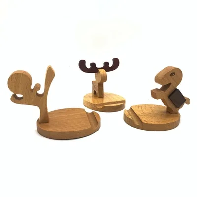 Creative ins lazy person tablet, solid wood stand base, wooden desktop, cartoon phone base, engraved gift LOGO