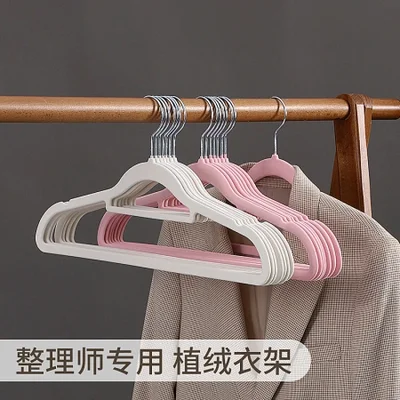 Cross-border flocking anti-slip clothes hangers, specially organized by storage experts, household plastic seamless thin clothes hangers, factory wholesale