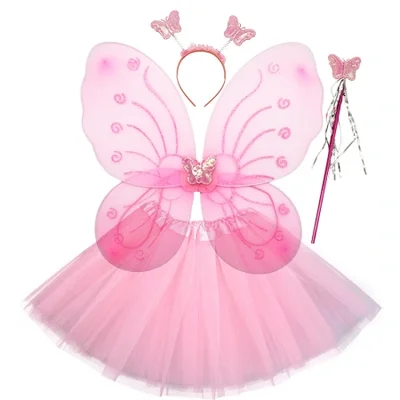 Foldable butterfly wing four-piece children's puffy skirt set is selling well across borders. Wholesale of folding angel wings