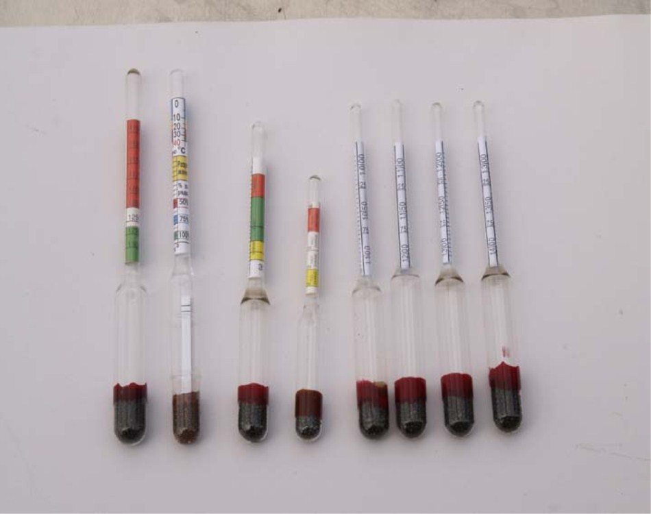 Electro-hydraulic hydrometer, suction type electro-hydraulic hydrometer, battery fluid hydrometer