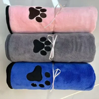 Extra-large soft and comfortable pet towel, cat and dog bathing and beauty bath towel, 50*100cm embroidered dog paw towel