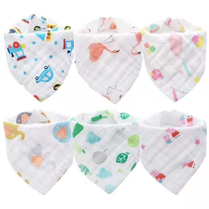Six-layer gauze pure cotton baby saliva wipes, baby triangular wipes, children's bibs