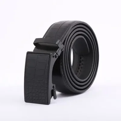 Wholesale of men's automatic buckle belts for business and casual wear, featuring fashionable patterns and double-buckle black automatic buckle belts
